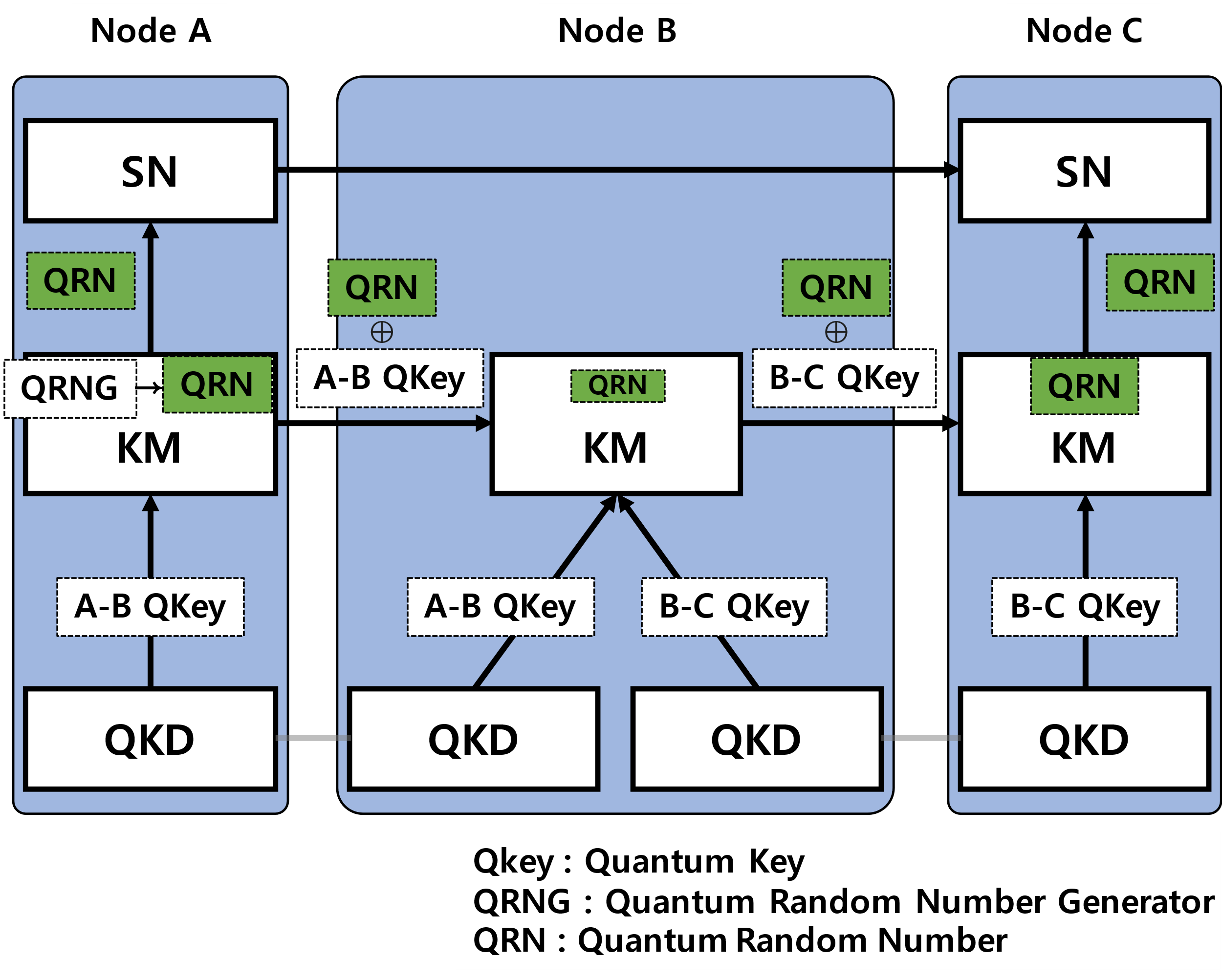 □ The SQRS enables secure and intelligent quantum key delivery between independently operated Quantum Key Distribution (QKD) networks. Unlike conventional dependent structures, SQRS is designed to allow flexible and efficient key exchange between vendors and operator networks without the risk of information leakage. Notably, its ability to dynamically select the optimal encryption method according to each user’s security requirements and available quantum key capacity minimizes transmission latency and enhances overall operational efficiency—making it a core technology for scalable quantum communication networks.