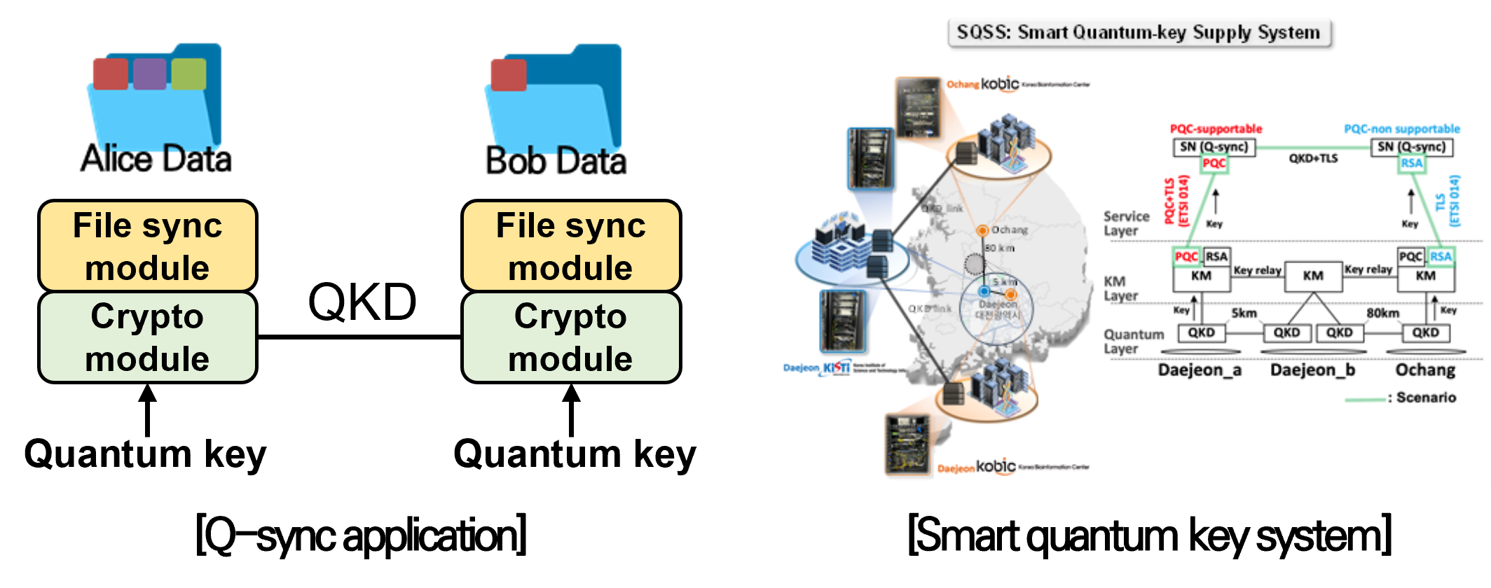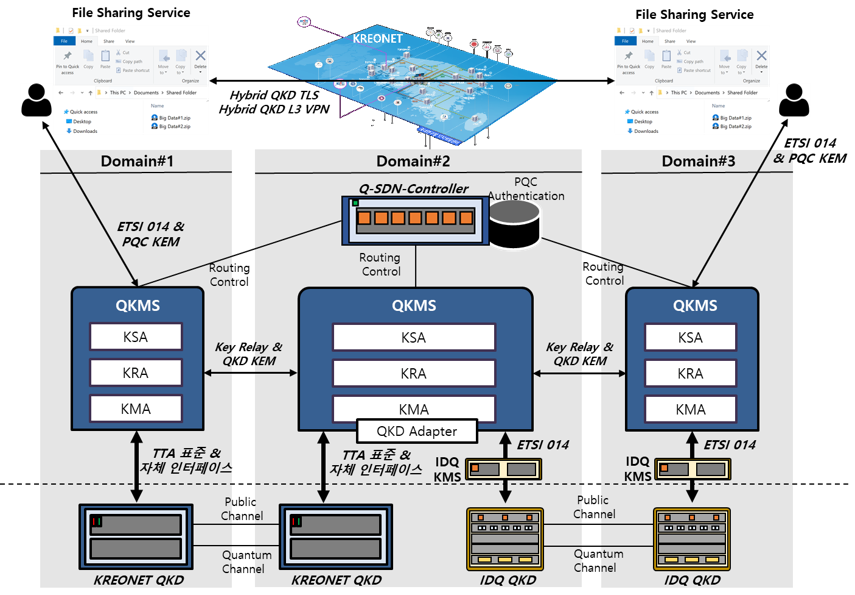 서로 다른 QKD 장비와 네트워크를 안전하게 연결하기 위해 양자 내성 암호(Post Quantum Cryptography)와 유럽기술표준기구(European Telecommunications Standards Institute, ETSI) 인터페이스를 적용했으며, 이를 통해 국내외 연구망을 아우르는 대규모·고신뢰 양자 암호 서비스를 가능하게 하고 있다.