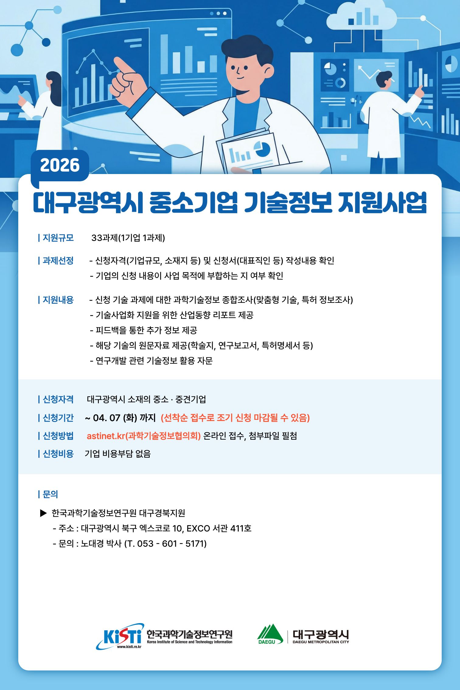 문의 한국과학기술정보연구원 대구경북지원 노대경(☎053-601-5171)