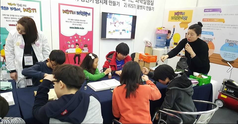 KISTI에서는 우수성과 사례를 통한 청소년들에게 과학기술에 대한 이해도 증진을 위해 과학전시에 참가하여 함께하는 신나는 과학실험,꿈뱃지 만들기 체험 프로그램 진행하였다.