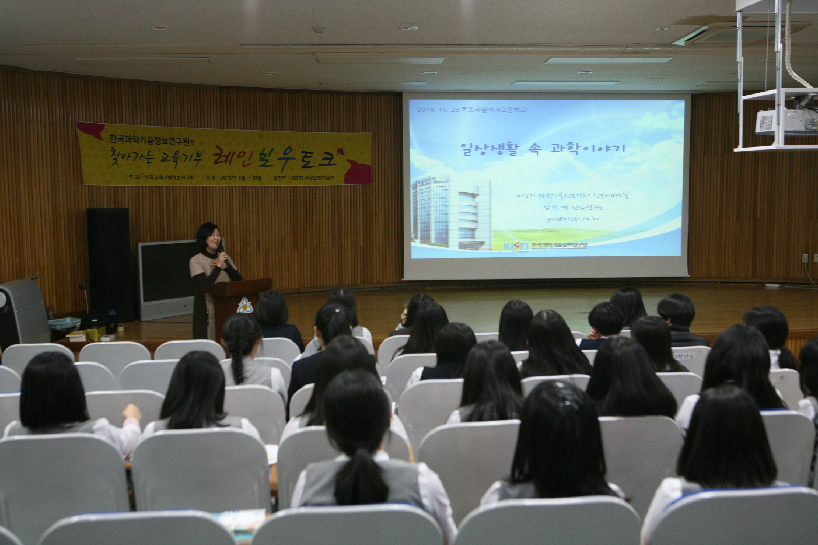 찾아가는 교육기부 [레인보우토크]의 스무번째 과학강연이 10.28(수) 목포 제일여고 1,2학년 과학반 60명을 대상으로