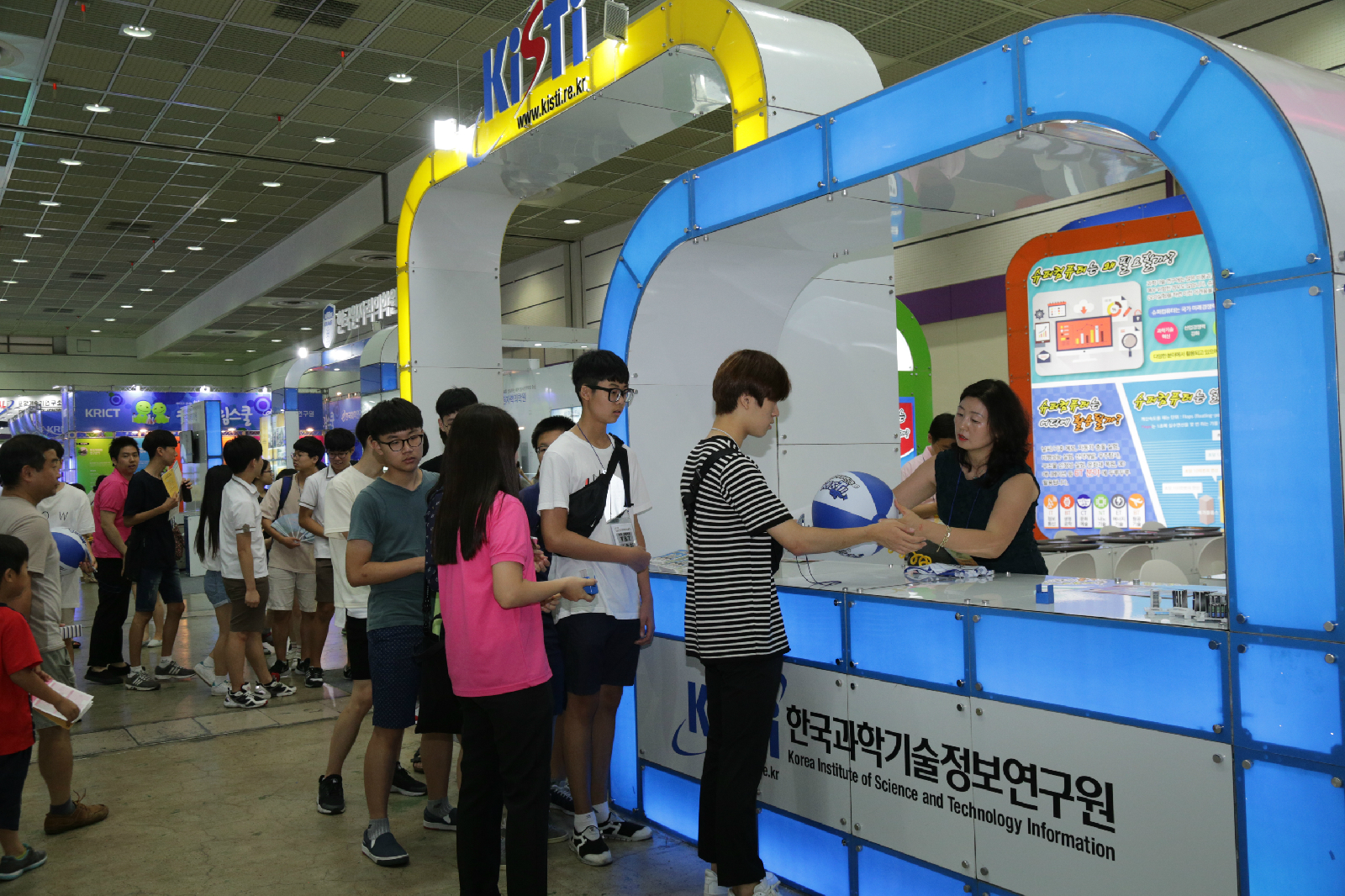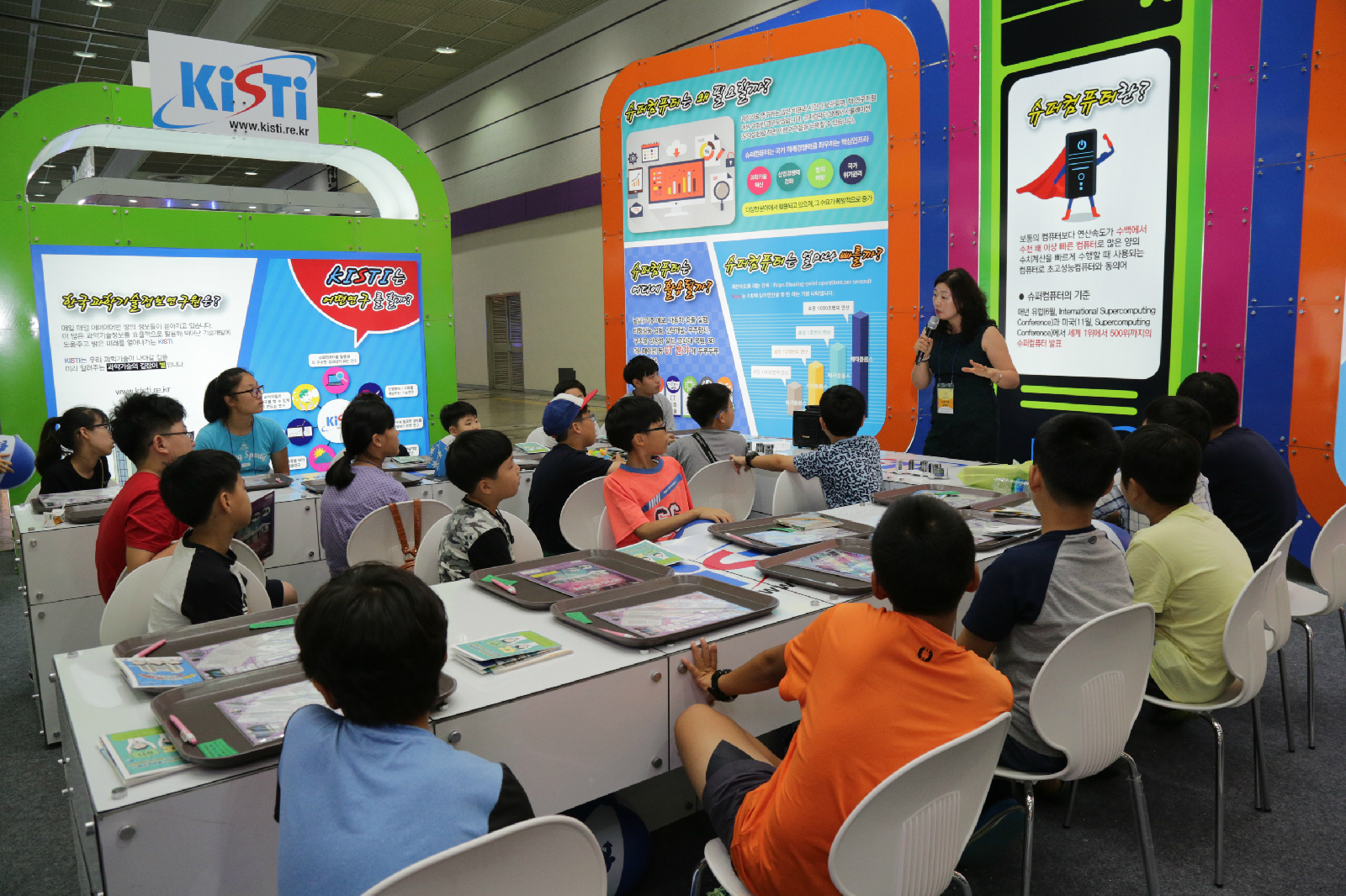 한국과학기술정보연구원(KISTI) 부스는 '슈퍼컴퓨터가 만드는 슈퍼대한민국'이라는 주제로 슈퍼컴퓨터에 대한 정보와 3D 퍼즐로 슈퍼컴퓨터를 만들어보는 과학전시를 운영하였습니다.
