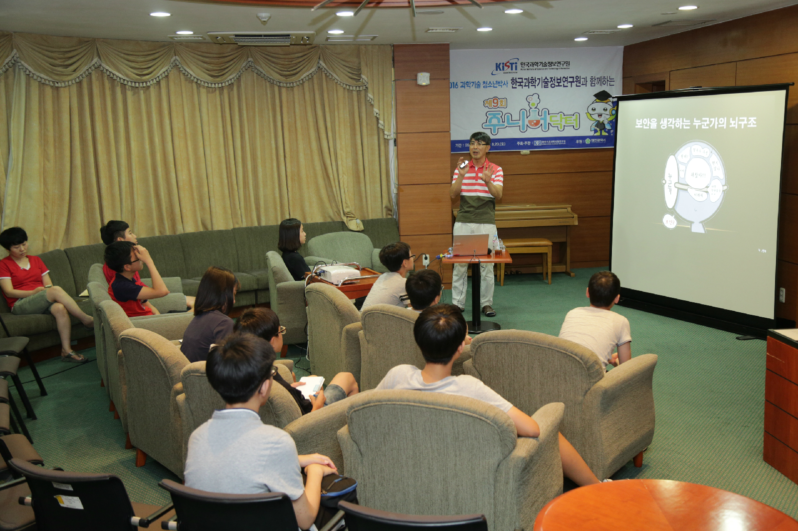 학생들의 관심이 높은 분야인 사이버테러와 정보보안의 중요성, 빅데이터의 미래, 발명으로 머리좋아지기에 관한 주제로 여름방학을 맞이한 주니어닥터 참가 학생들에게 꿈과 희망을 선물하였습니다.