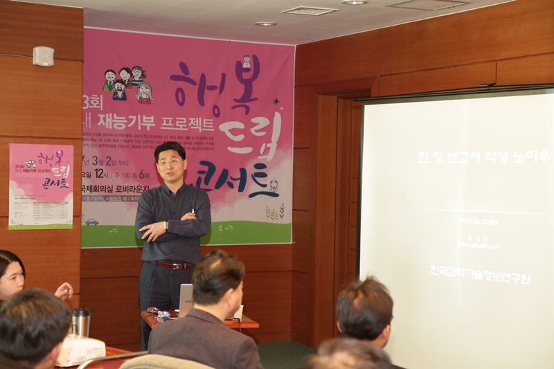 이번 콘서트는 송장헌 실장님의 ‘한 장으로 끝내는 기획서’라는 주제로 3월 23일 목요일 본원 국제회의실 로비라운지에서 열렸습니다.