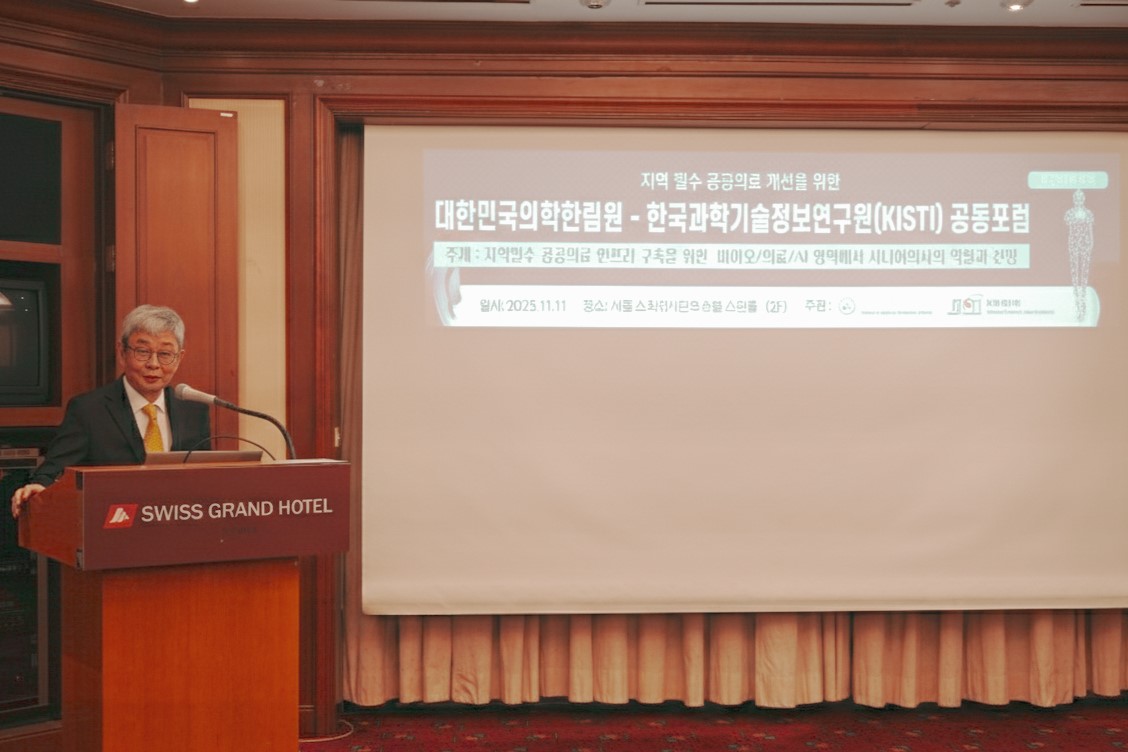 □ 한국과학기술정보연구원(원장 이식, 이하 KISTI)은 대한민국의학한림원(원장 한상원, 이하 의학한림원)과 함께 11월 11일(화) 서울 스위스그랜드호텔에서 지역 필수 공공의료 개선을 위한 공동포럼을 개최했다고 밝혔다.