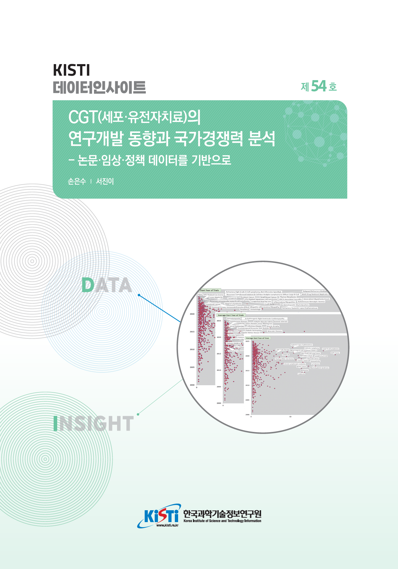 □ 한국과학기술정보연구원(원장 이식, 이하 KISTI)은 세포·유전자치료(Cell & Gene Therapy, 이하 CGT) 분야의 글로벌 연구개발 동향과 국가 경쟁력을 분석한 결과를 발표했다. 이번 분석은 논문, 임상, 정책 데이터를 기반으로 수행됐으며, 관련 내용은 ‘데이터 인사이트(DATA INSIGHT)’ 제54호로 발간됐다.